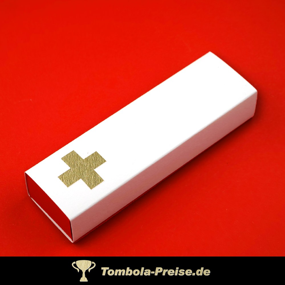 Aus der Einzelverpackung wurde eine Kreuz / Pluszeichen ausgestanzt. Die Kartonfarbe der Schiebehülle und der Einlage können jeweils aus über 30 Farbvarianten frei gewählt werden.