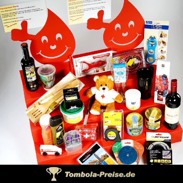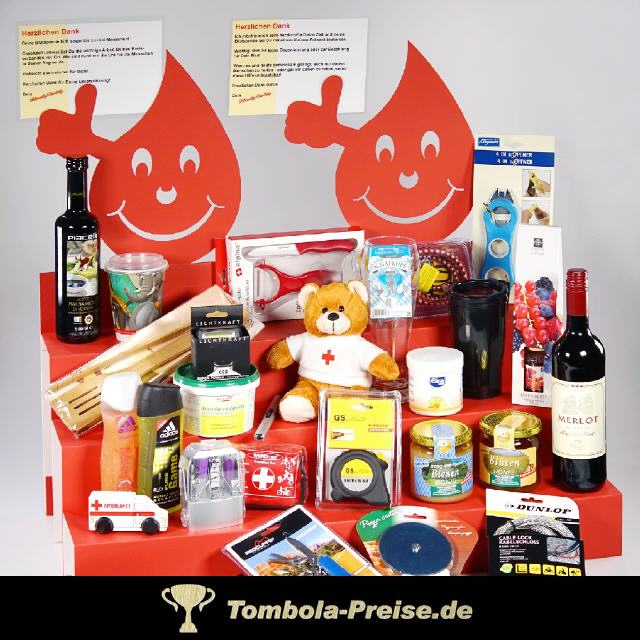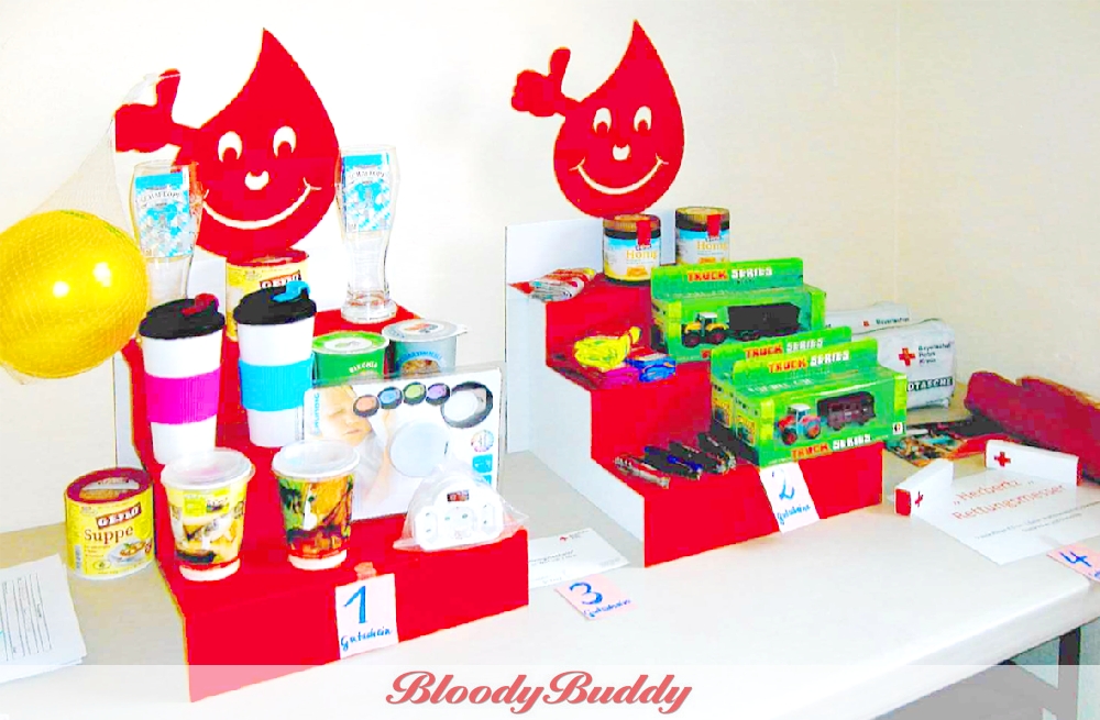 Mein Tipp: Immer nur ein ausgepacktes Musterstück dort ausstellen. Nachdem sich ein Blutspender für ein Geschenk entschieden hat, bekommt er es - hygenisch verpackt - aus dem Vorratskarton unter dem Tisch.