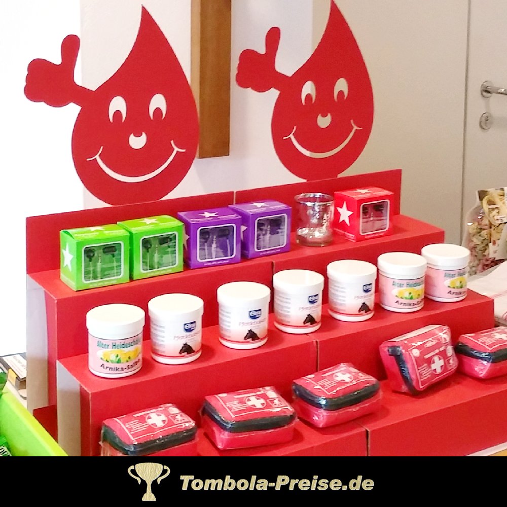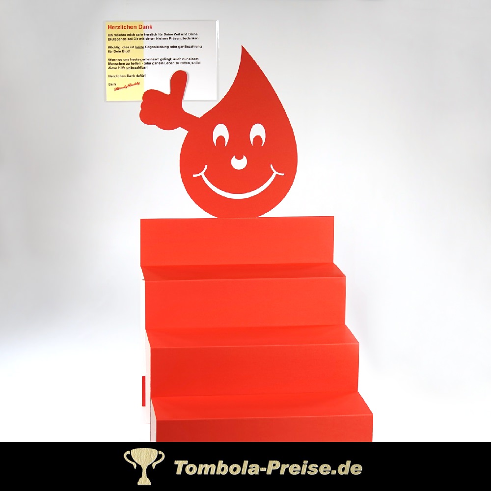 Werte Deine Blutspende-Geschenke auf und präsentiere sie übersichtlich auf meinem Treppen-Display.