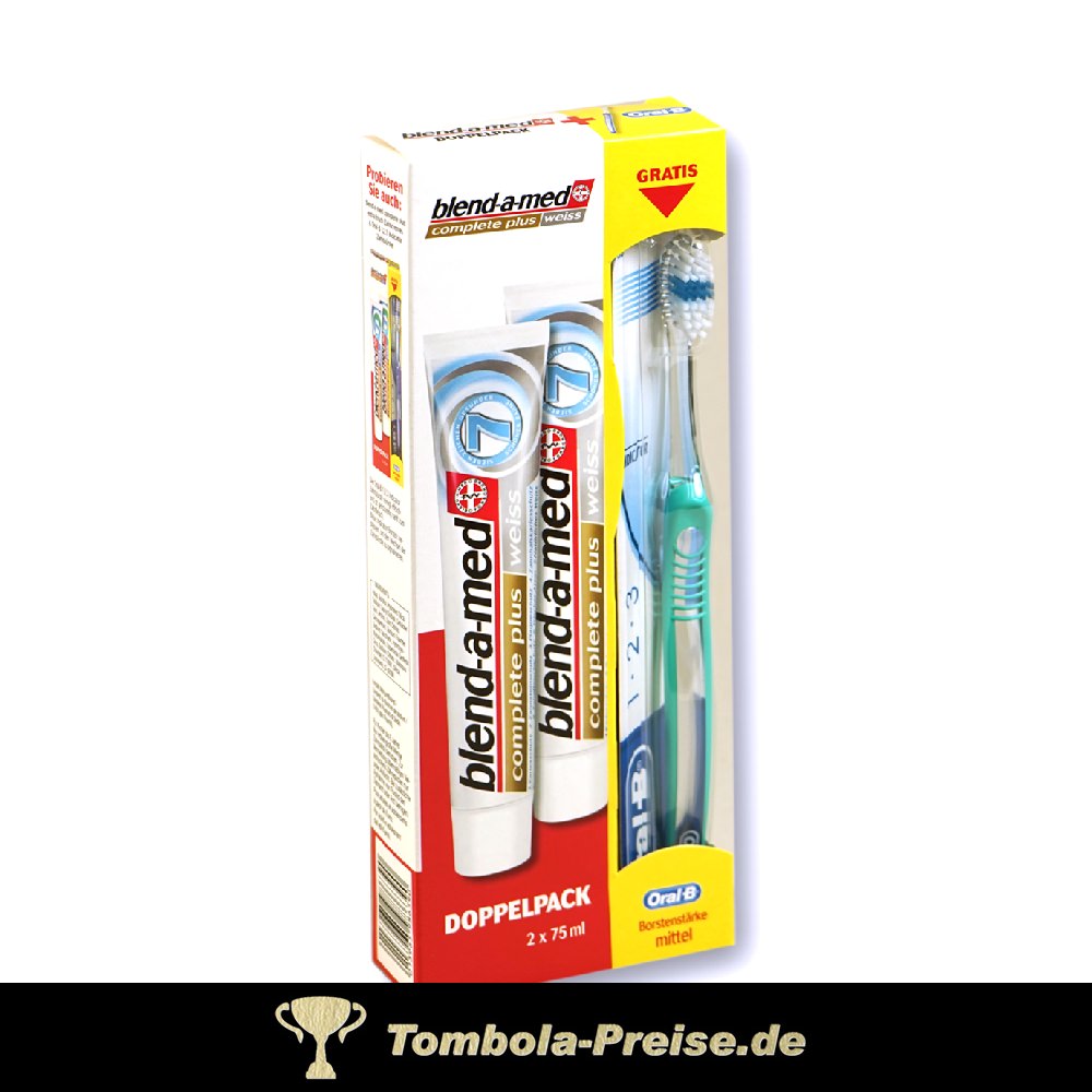 Sie sind hier: Tombola-Preise.de » Tombolapreise nach Kategorie » Wellness, Körperpflege, Gesundheit Blend-a-Med Set Blend-a-Med Zahncreme Doppelpack mit Zahnbürste 30001 Arnika Salbe Shampoo 7 Kräuter